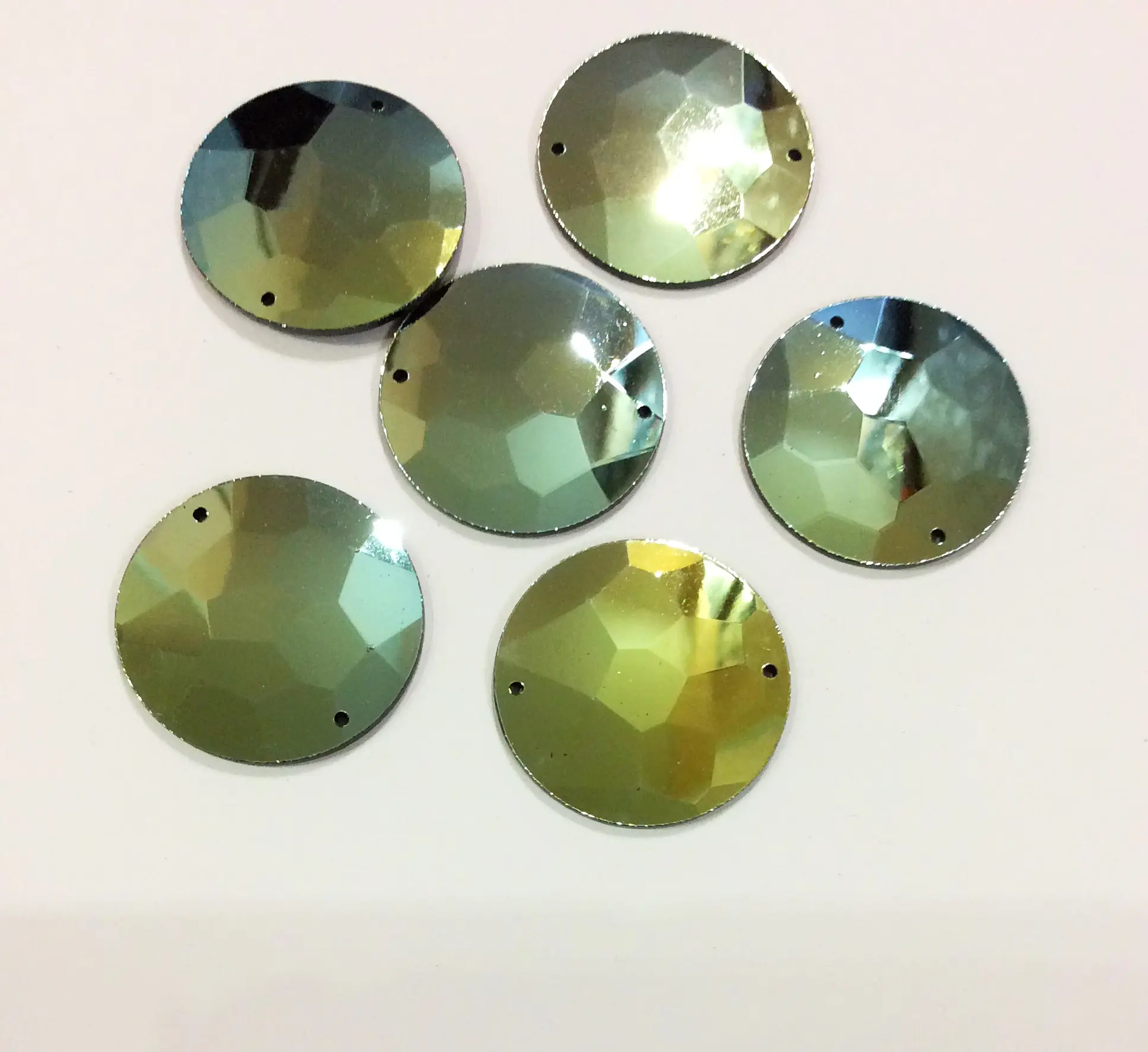 > Зеркало пришивное граненое круг 30мм зеленое золото, без пленки, акрил