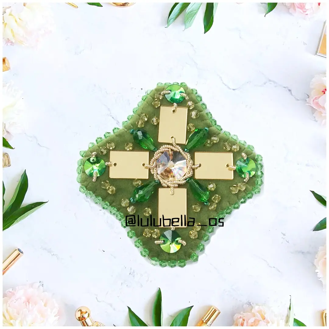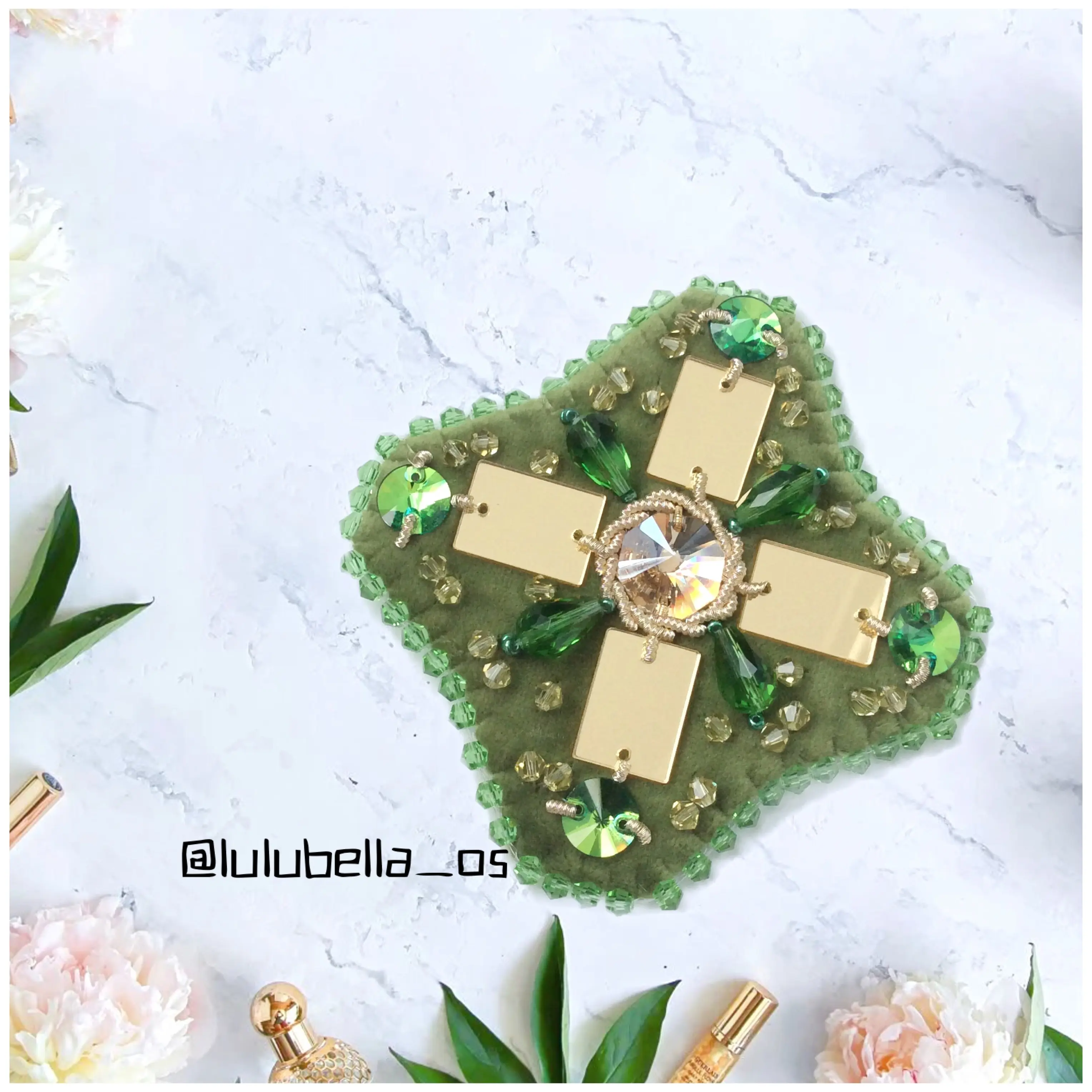 материалы: фетр, бархат, зеркала, кристаллы асфур, хрустальные бусины, металлическая застежка, размер 9*9 см
