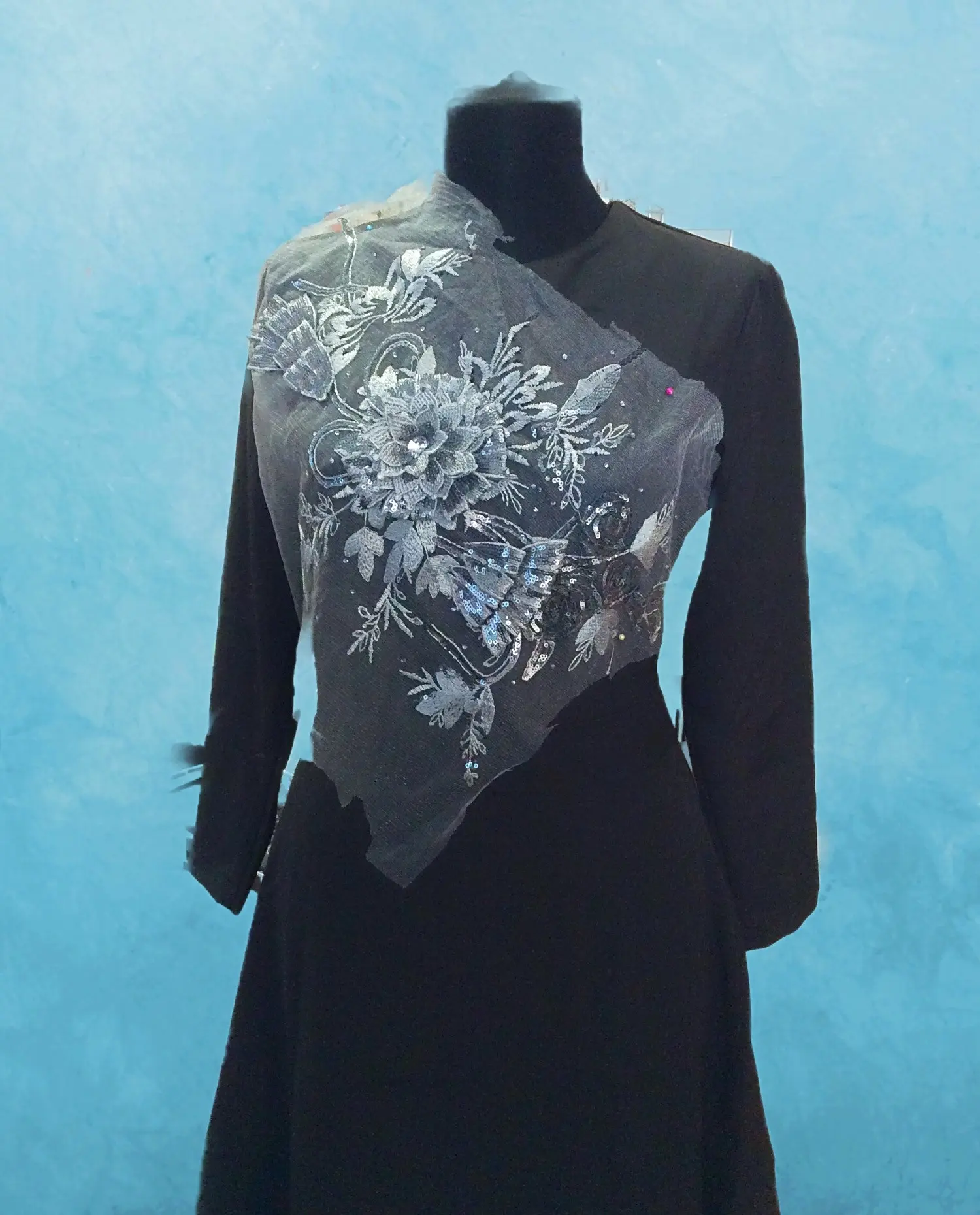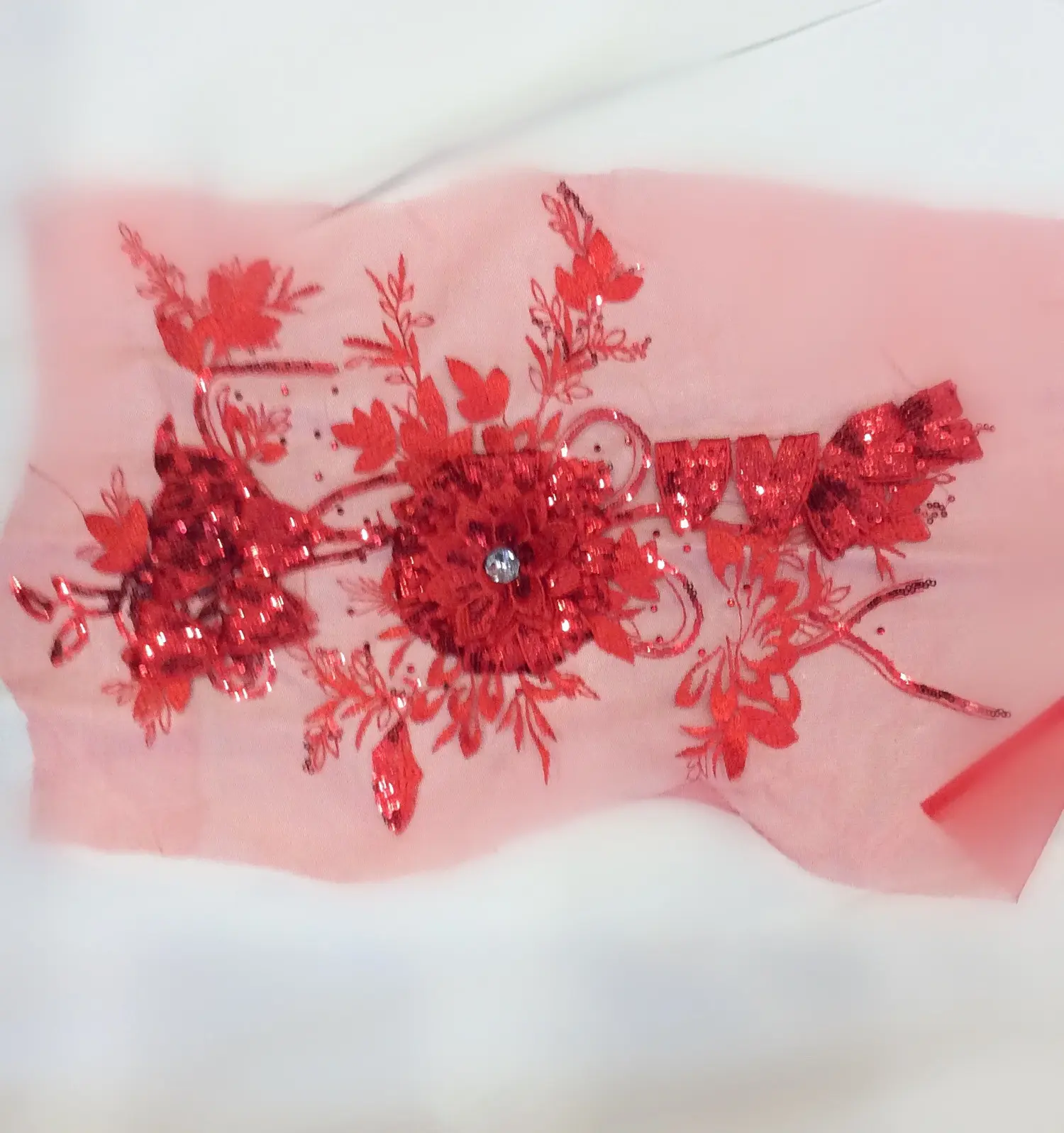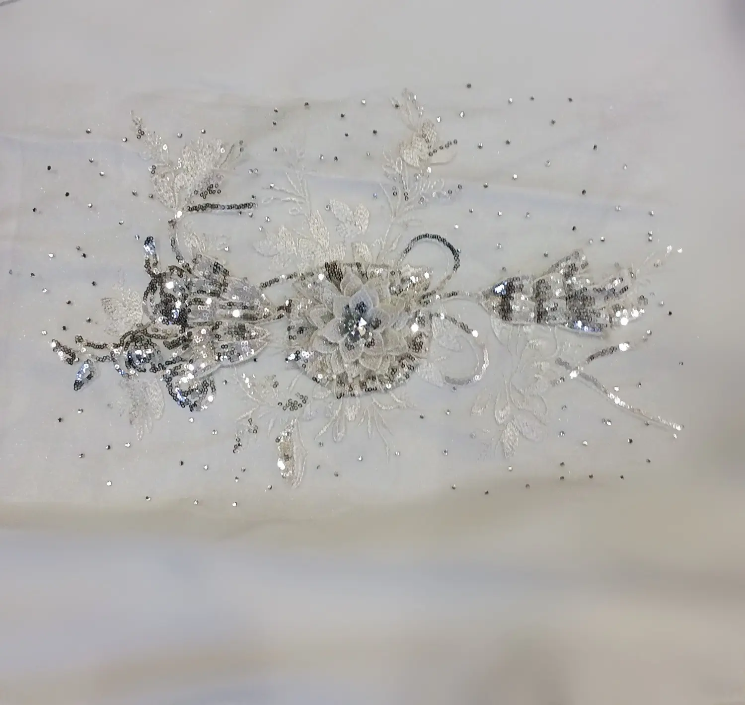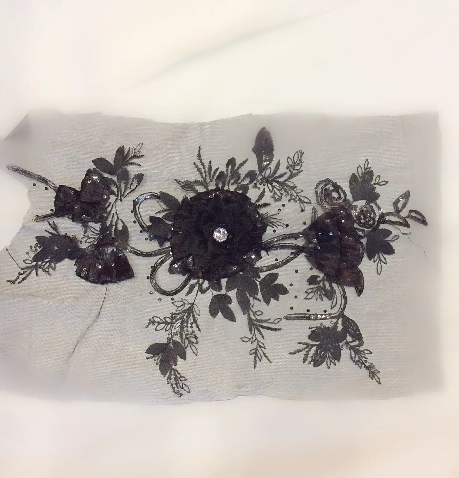 Элемент на сетке, 41*30, стразы, пайетки, вышивка гладью