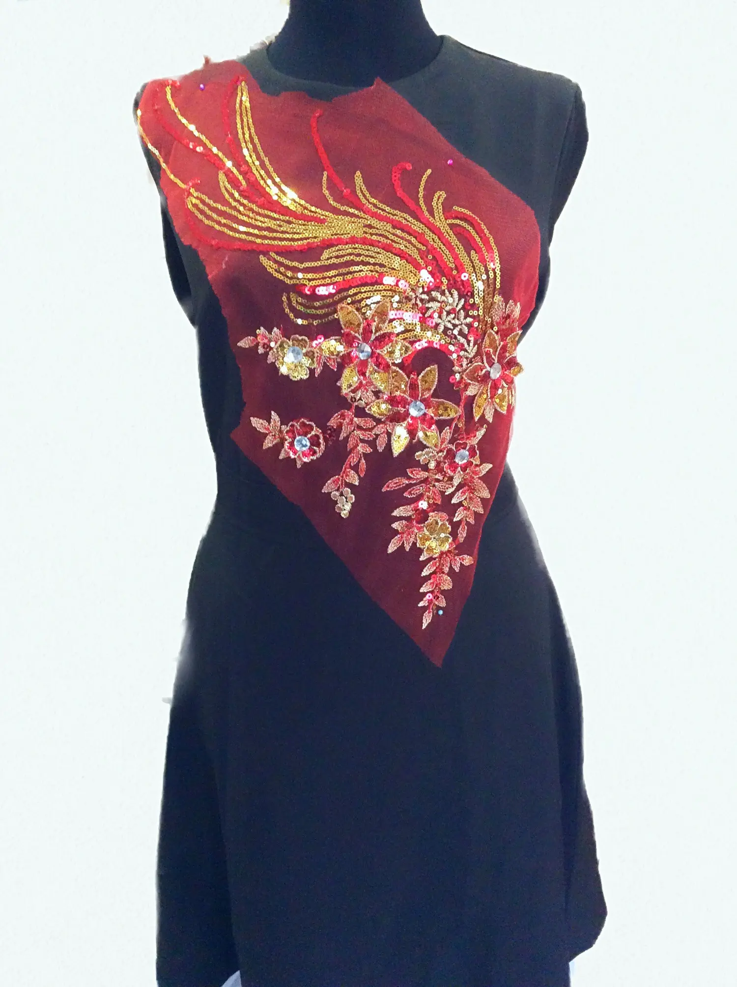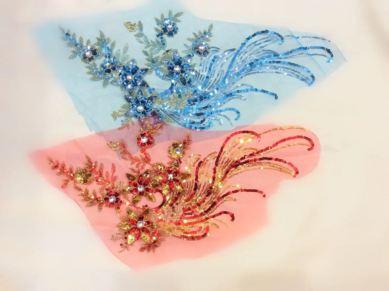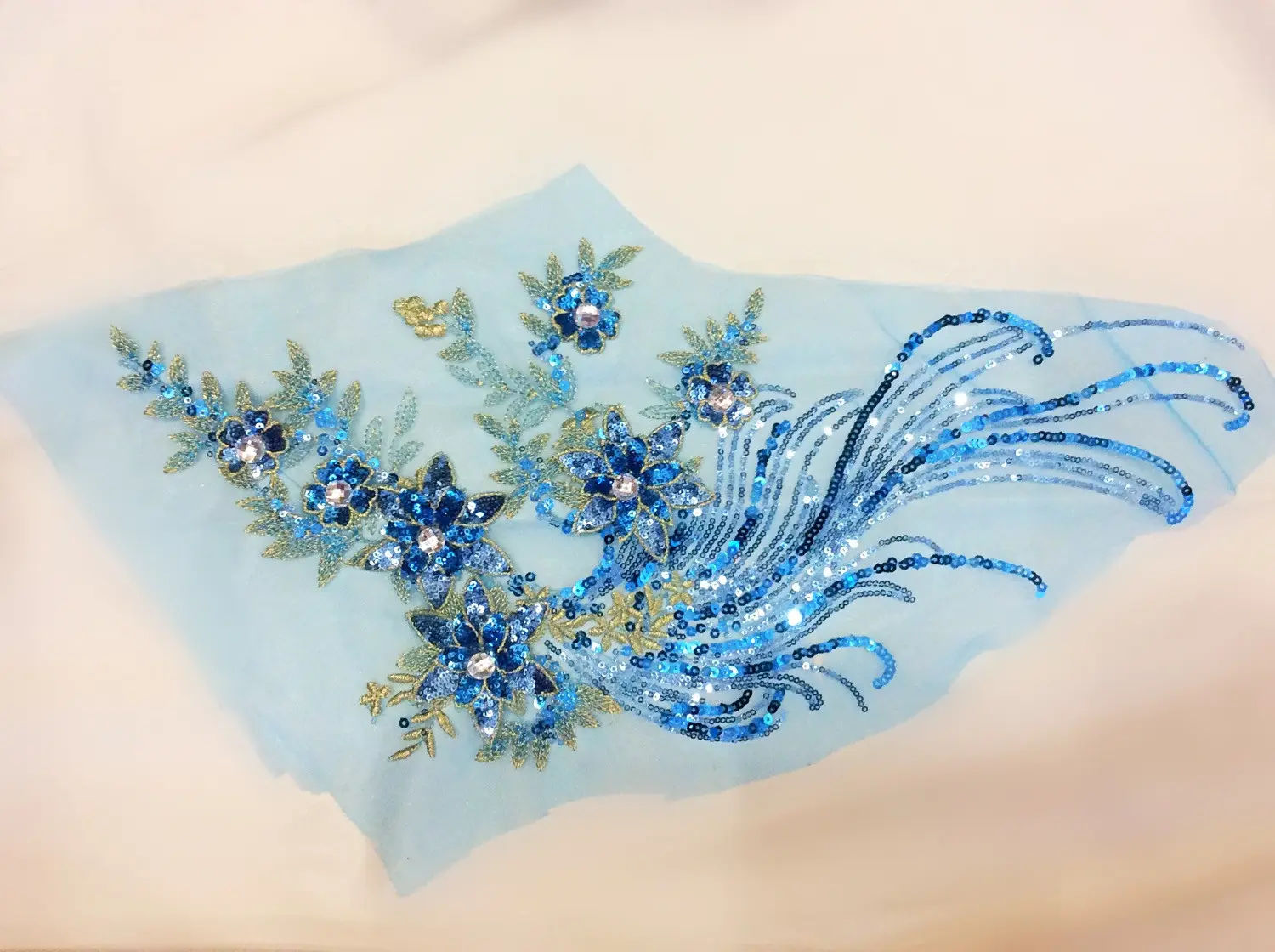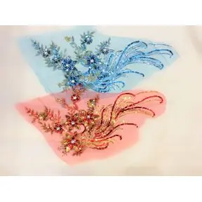 Элемент на сетке, 50*24, стразы, пайетки, гладь метализированной нитью