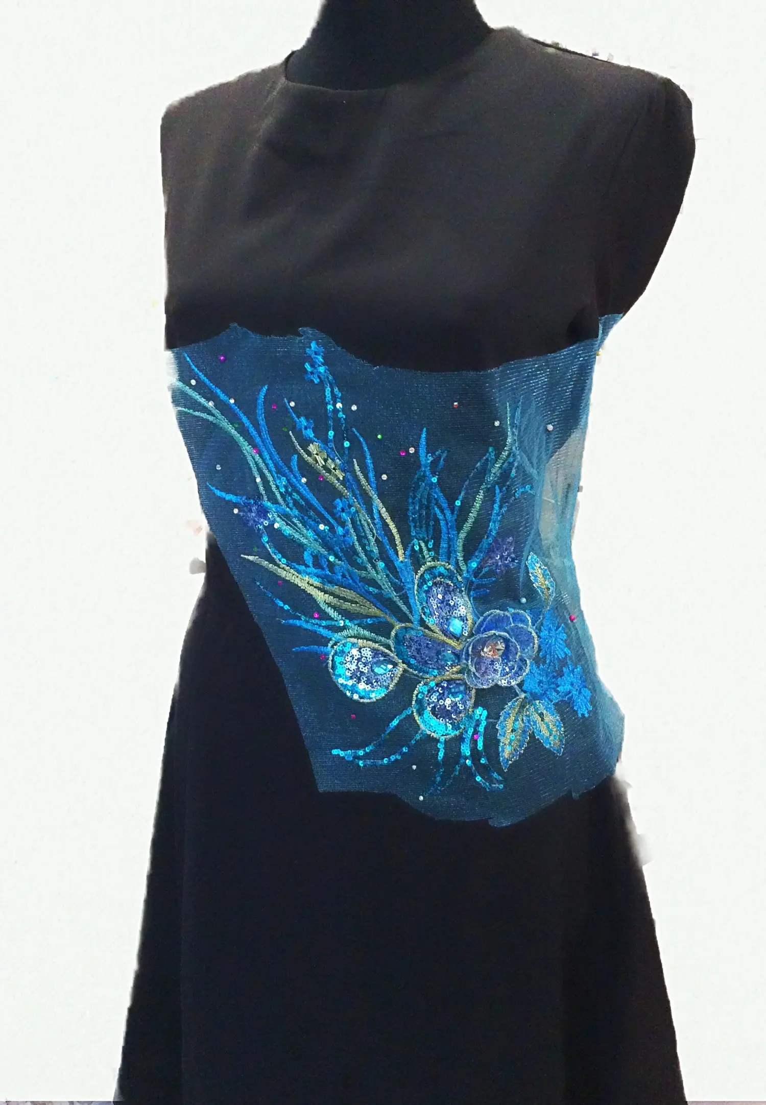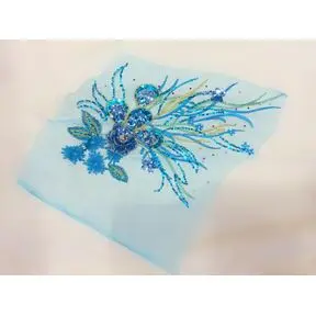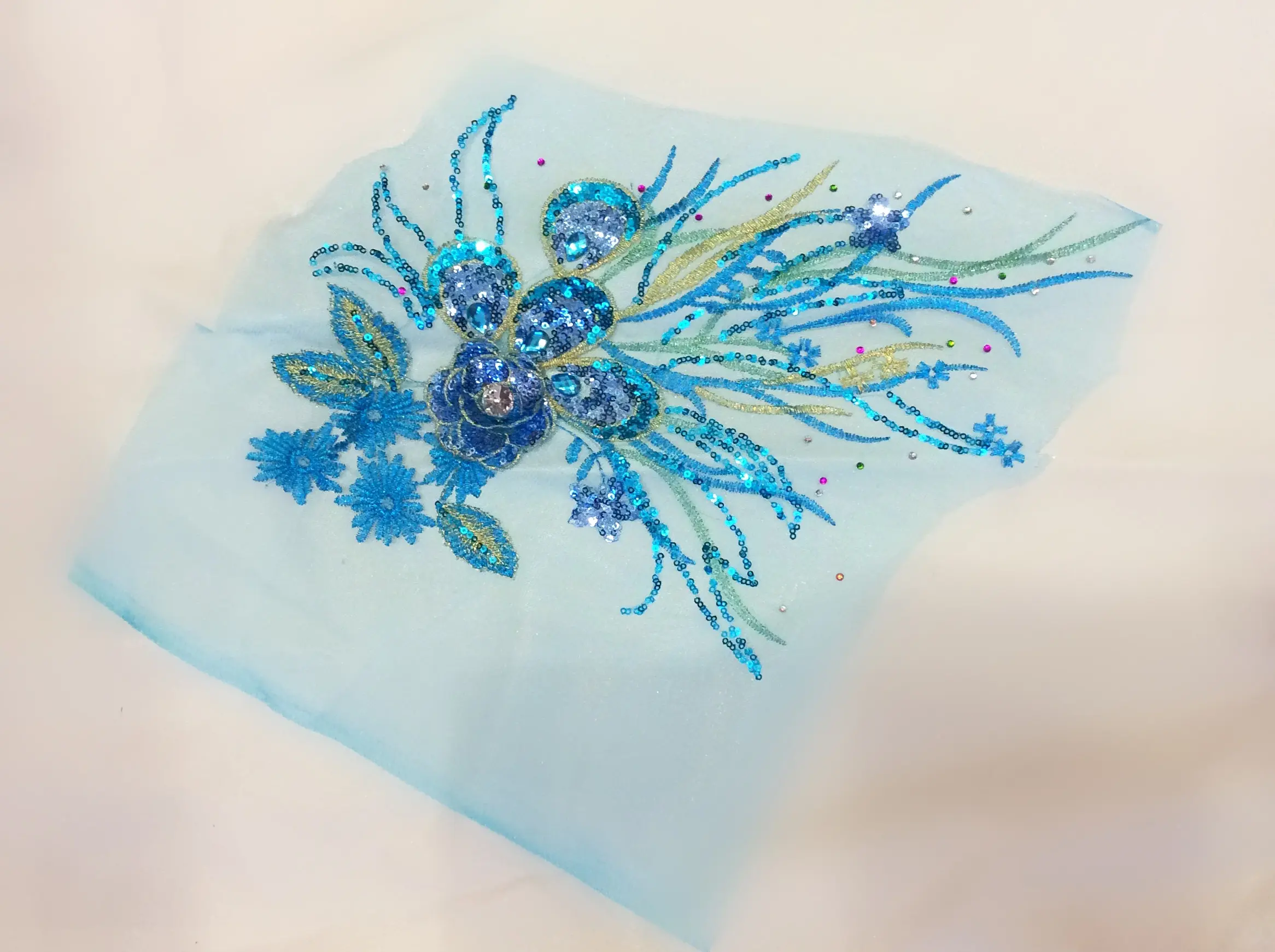 > Элемент на сетке, 40*28, голубой и золото, стразы, пайетки, гладь метализированной нитью