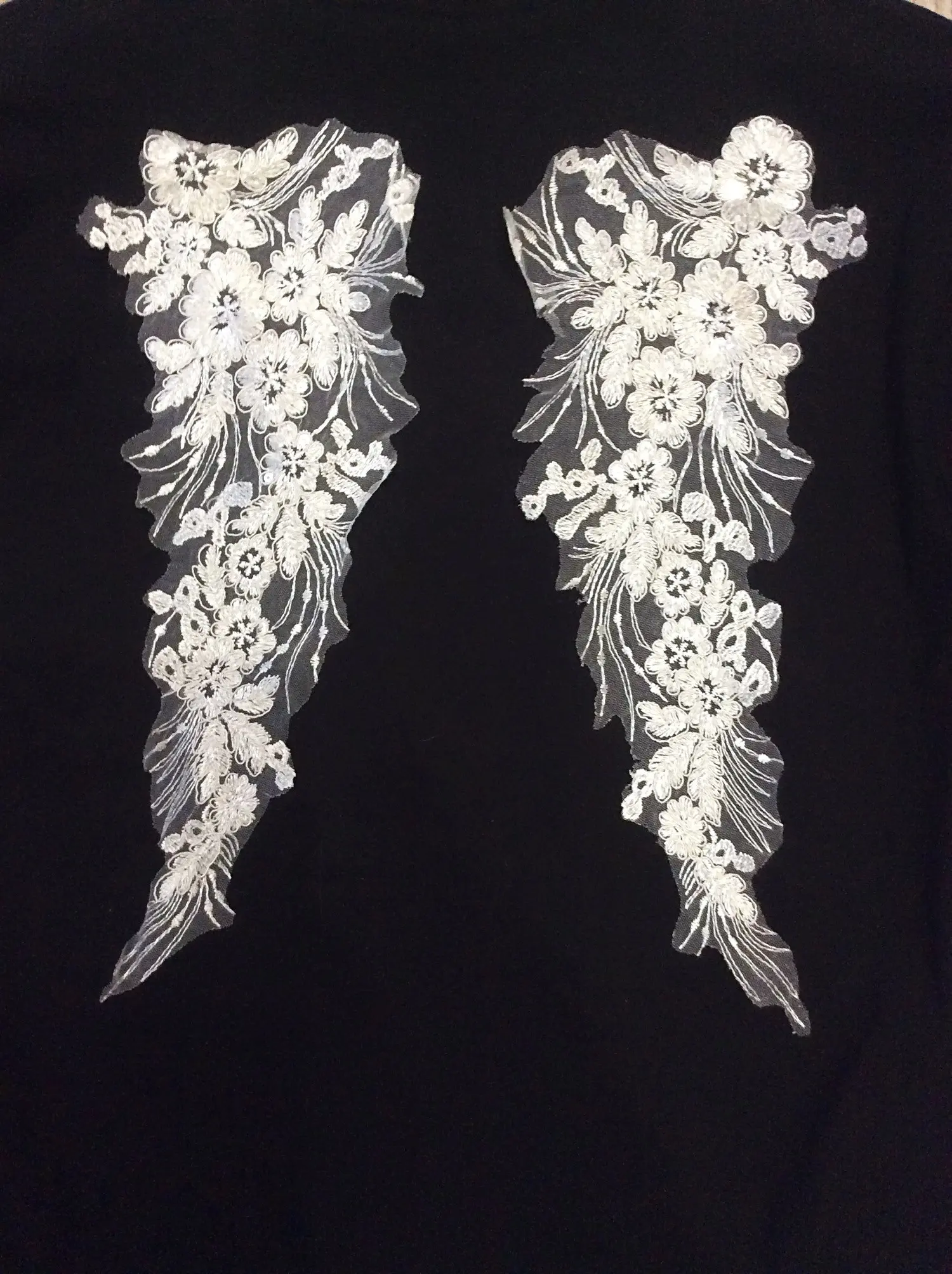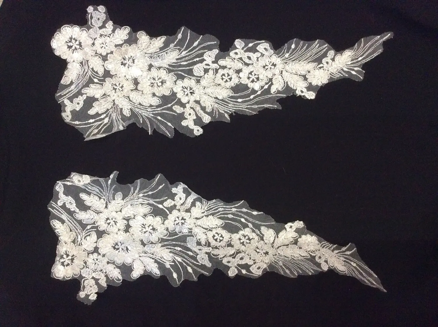 Элементы на сетке парные белые 34*15, паетки, гладь
