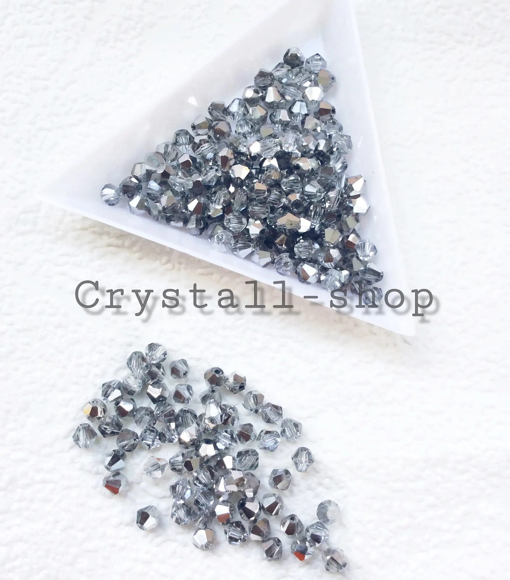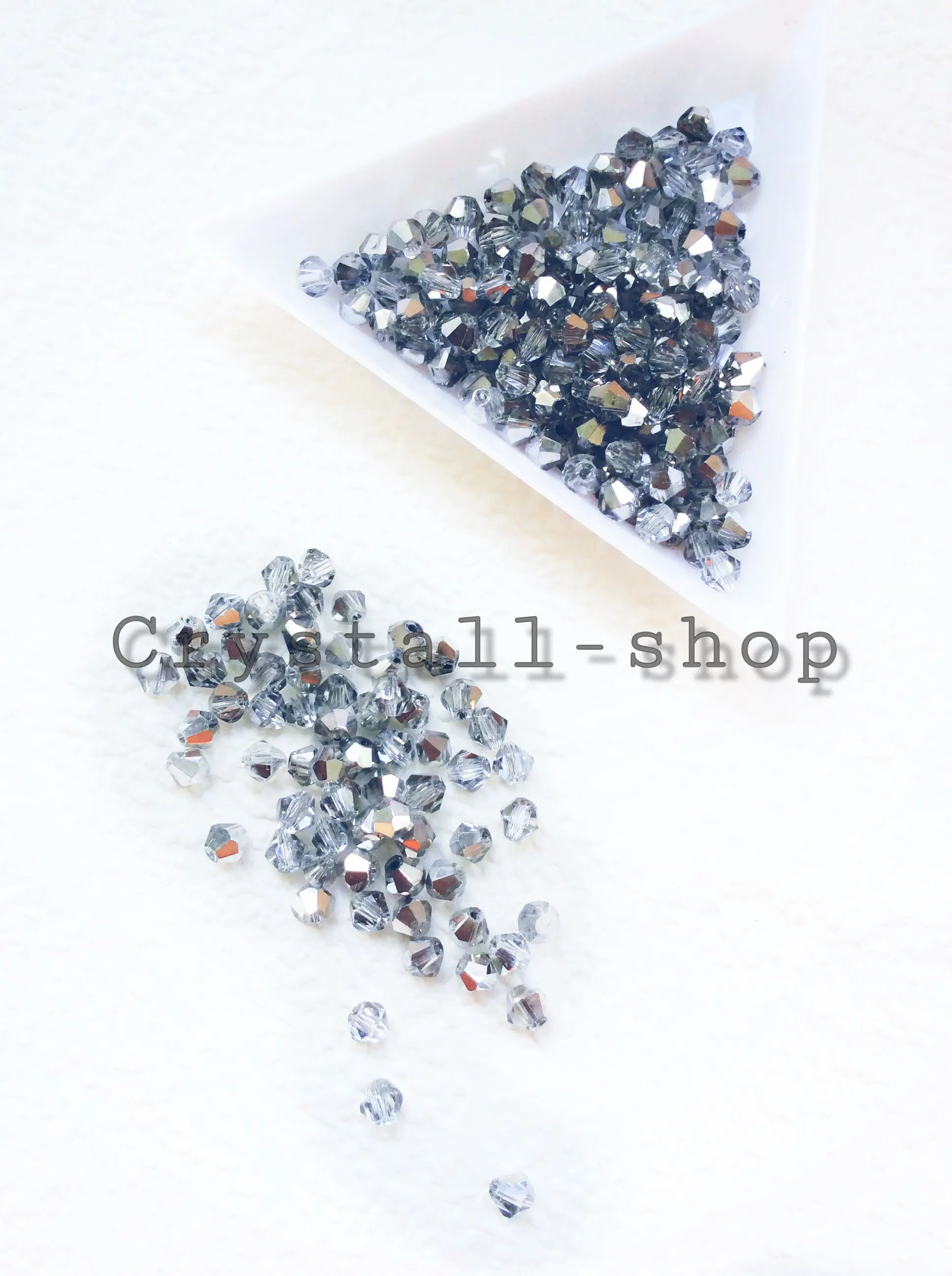Бусина биконус 4 мм серебряный кристал хрусталь