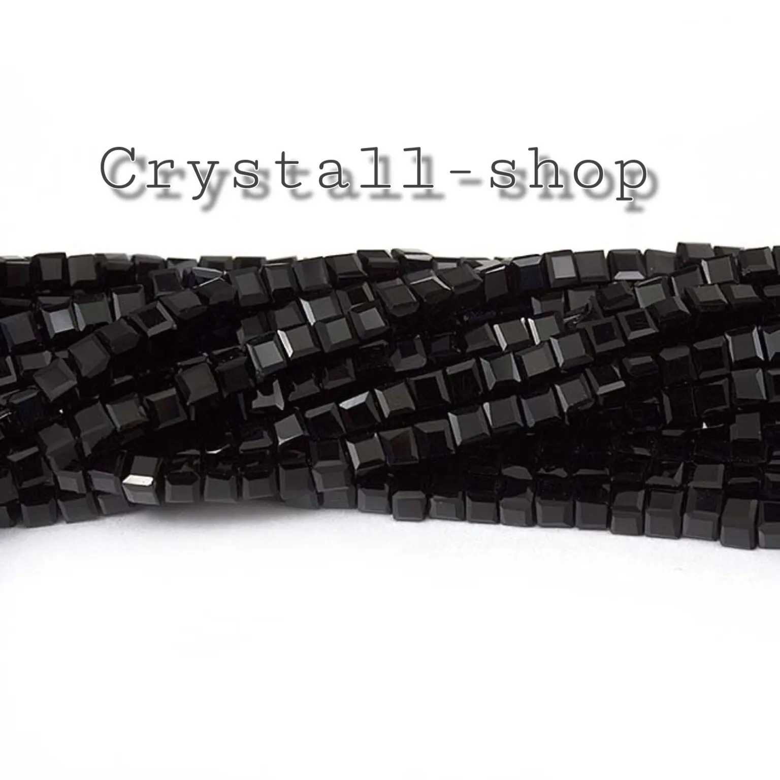 Бусина кубик 2 мм кубик джет хрусталь, нитка 100 штук примерно