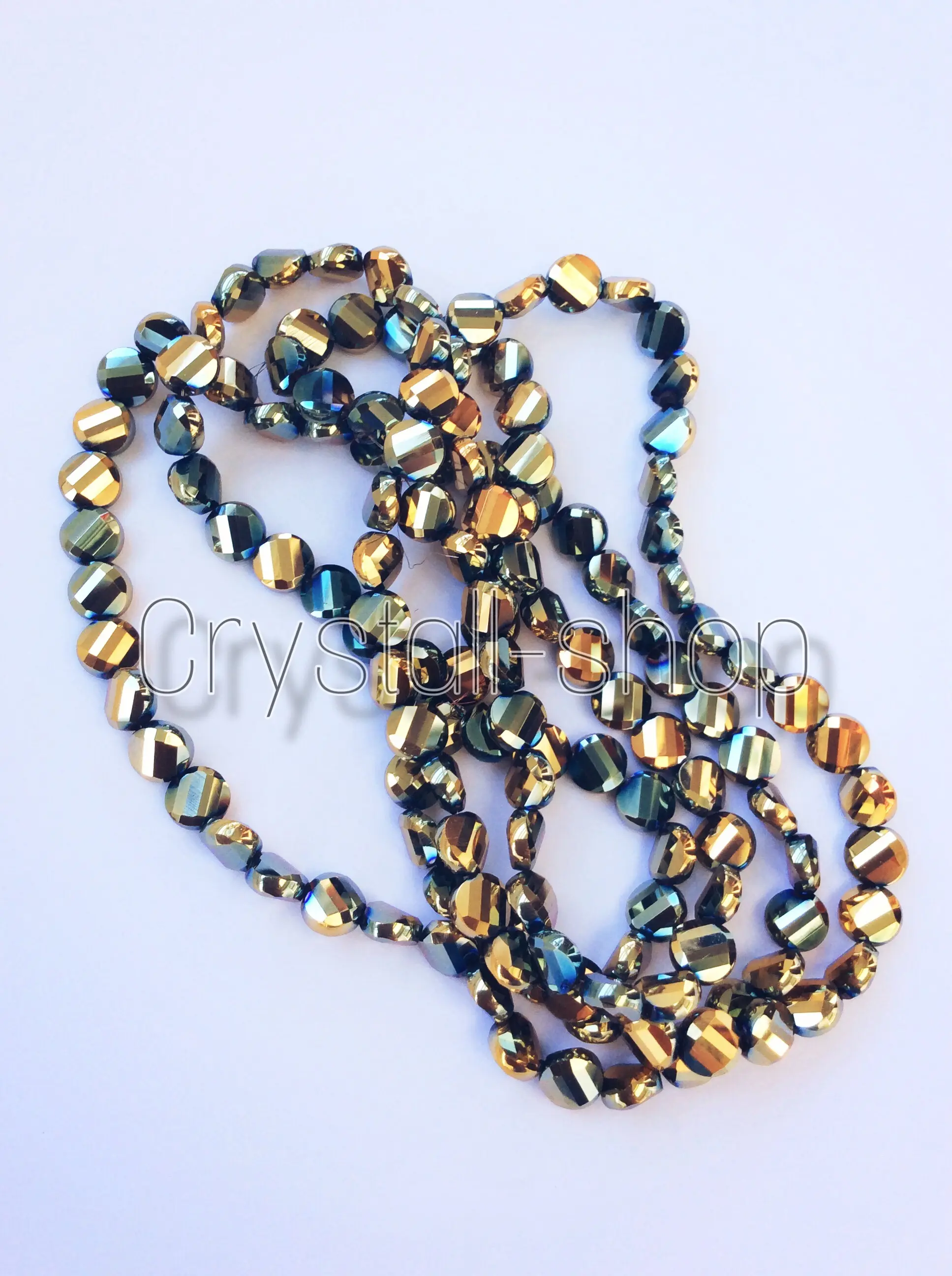 Бусина круг плоский 8 мм синий гематит и золото хрусталь