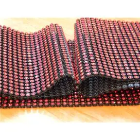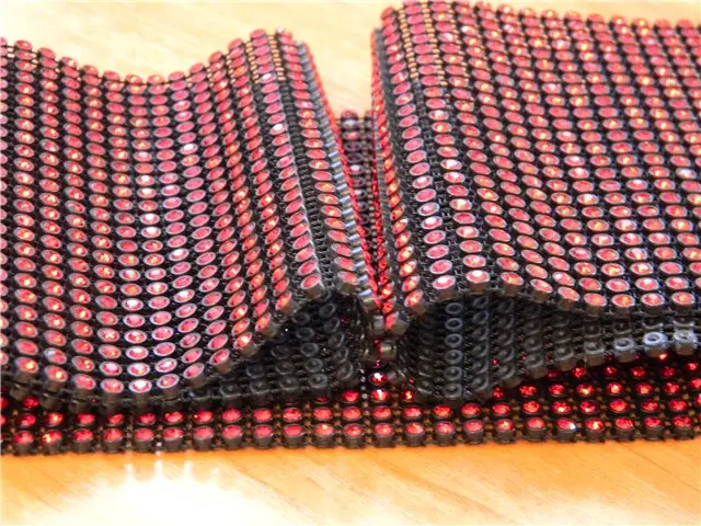 Стразовое полотно в черном пластике с хрустальными кристаллами лайт сиам. Полотно в ширину 11 см и 24 ряда, искрится нереально, не цепляется, можно проявить фантазию, вырезать из него разные нашивные элементы - ромбы к примеру, или выстригать из него оправу в несколько рядов для квадратных камней, можно разрезать на ряды, тогда из одного метра у вас получится 24 ярда качественной, стеклянной, сияющей ленты, полного аналога сваровски, но по цене в разы дешевле.
