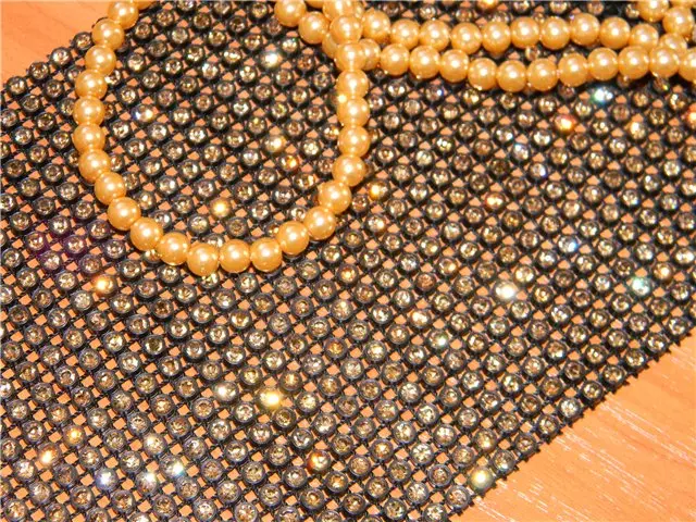 Стразовое полотно в черном пластике с хрустальными кристаллами лайт колорадо топаз. Полотно в ширину 11 см и 24 ряда, искрится нереально, не цепляется, можно проявить фантазию, вырезать из него разные нашивные элементы - ромбы к примеру, или выстригать из него оправу в несколько рядов для квадратных камней, можно разрезать на ряды, тогда из одного метра у вас получится 24 ярда качественной, стеклянной, сияющей ленты, полного аналога сваровски, но по цене в разы дешевле.