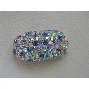 > Элемент - заколка "Стразовый овал". 4,5 * 2,2 см. Белый металл + стразы мультиколор - ассорти. Стекло.