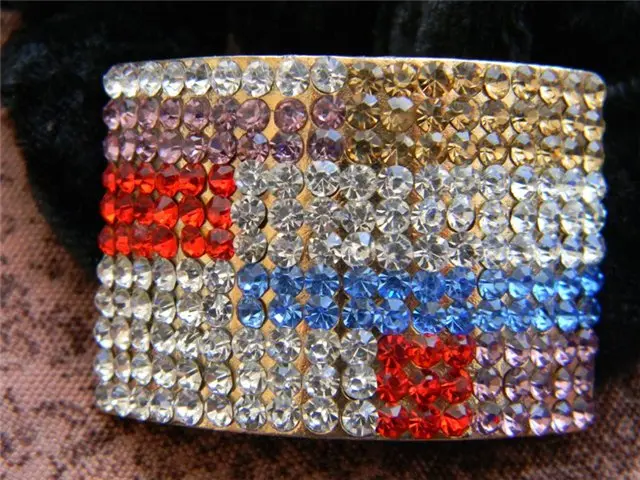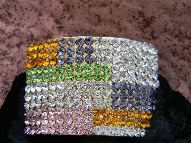 Элемент - заколка "Стразовый прямоугольник". 4,5 * 3 см. Золото+мультиколор - ассорти. Стекло.