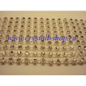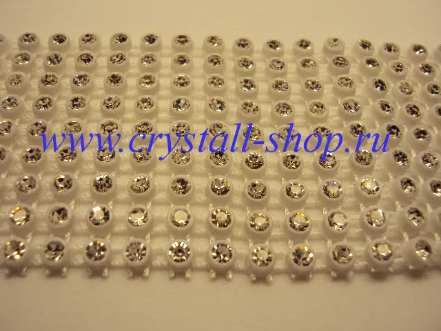 Стразовое полотно в белом пластике с бесцветными хрустальными кристаллами, Полотно в ширину 11 см и 24 ряда, искрится нереально, не цепляется, можно проявить фантазию, вырезать из него разные нашивные элементы - ромбы к примеру, или выстригать из него оправу в несколько рядов для квадратных камней, можно разрезать на ряды, тогда из одного метра у вас получится 24 ярда качественной, стеклянной, сияющей ленты, полного аналога сваровски, но по цене в разы дешевле.