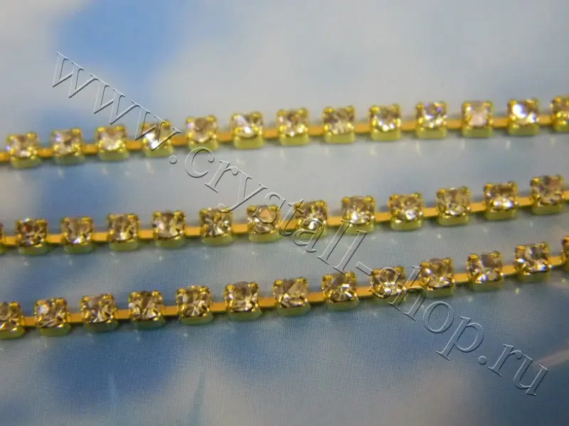 > Стразовая цепь Кристалл в золоте. Асфур. Металл. Размер сс 8,5